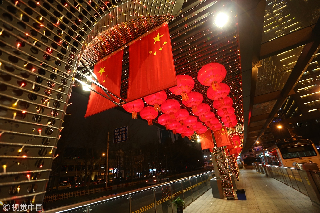 2019年1月31日,上海,新春将至,位于延安路外滩的中运量71路起讫站装饰一新,绚丽多彩,为外滩增添了节日喜庆的氛围。