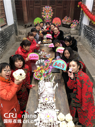 近日在中国历史文化名村党家村,韩城当地花馍艺人为外国网友献上一场“蒸花馍迎新春”的视频直播秀。直播中,花馍民间艺人用一双巧手制,凭借让人叹服的面塑技艺,制作了多个栩栩如生的面塑作品吸引了外国网友的眼球,引来连连点赞。(记者 赵江、张同义、张捷、廖亮、贺丽媛)