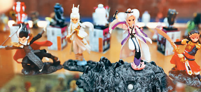 在青少年流行文化汇集地台北西门町,走进国际知名的动漫连锁商店,入口处的玻璃展柜里便是巡展中的《东离剑游纪》明星木偶。从造型酷炫的戏偶到大眼萌的公仔,再到或高冷或可爱的动漫周边商品,这些竟都出自台湾一家布袋戏的“百年老店”。