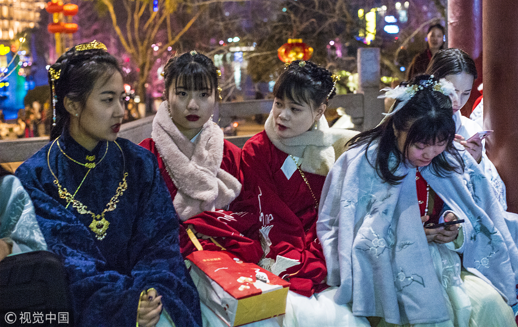 2019年2月1日,成都春节期间即将恢复的“夜游锦江”夜游航段将从339成华公园码头到合江亭段分段行船,全程约4.4公里。在合江亭,数百汉服爱好者齐聚。
