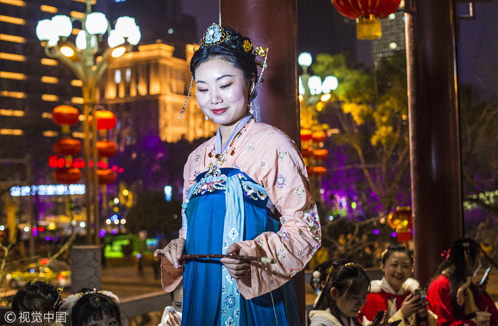 2019年2月1日,成都春节期间即将恢复的“夜游锦江”夜游航段将从339成华公园码头到合江亭段分段行船,全程约4.4公里。在合江亭,数百汉服爱好者齐聚。