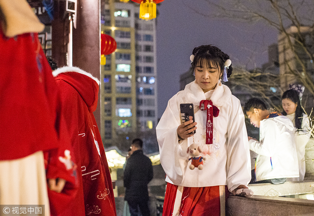 2019年2月1日,成都春节期间即将恢复的“夜游锦江”夜游航段将从339成华公园码头到合江亭段分段行船,全程约4.4公里。在合江亭,数百汉服爱好者齐聚。