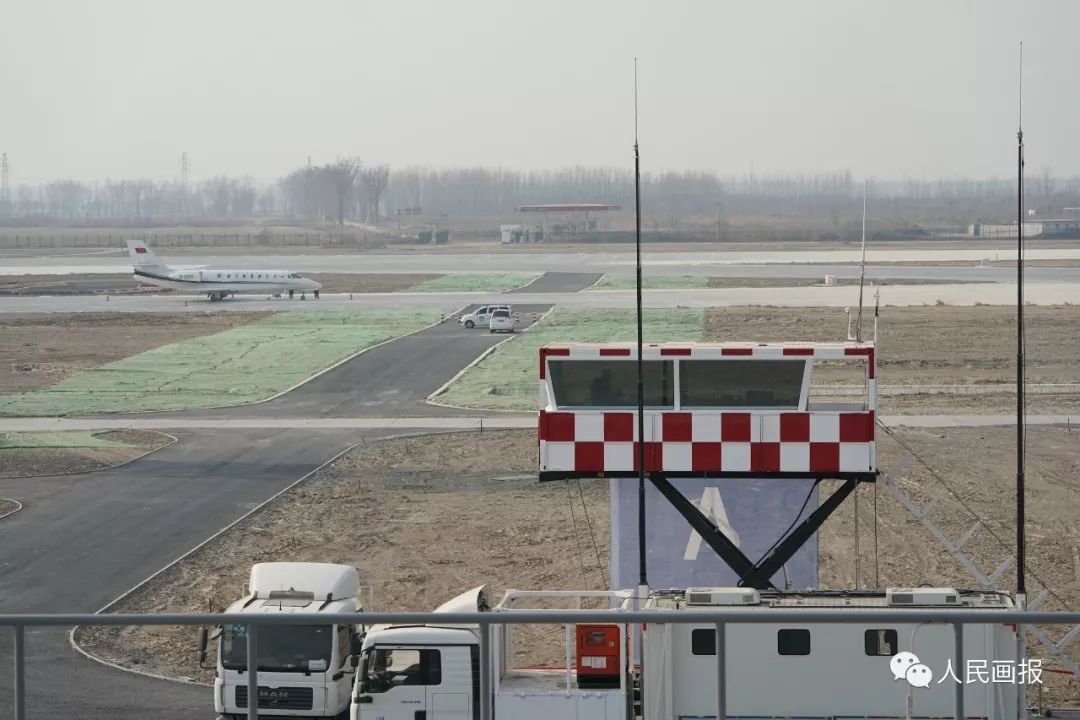 临时搭建的塔台远处,是正在建设的高标准新塔台。