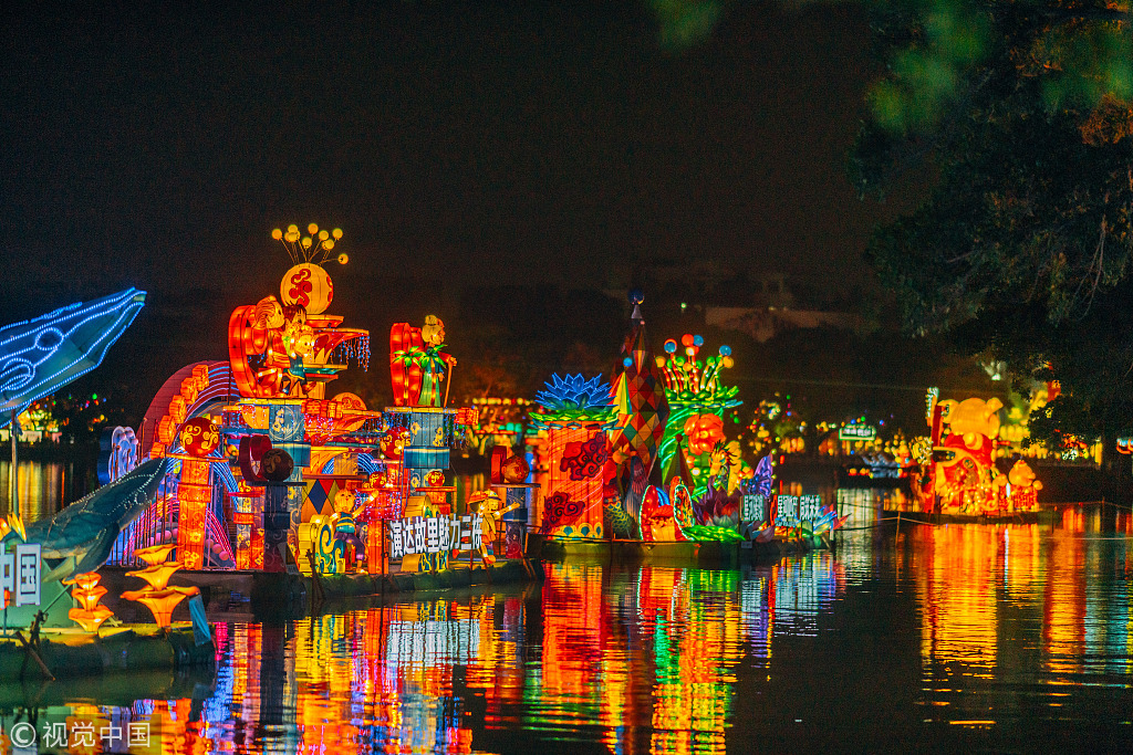 2019年2月2日,广东惠州,岭东雄郡·大美鹅城”2019年惠城区西湖灯会正式亮灯,吸引了众多市民前往观赏。据悉,今年灯会展出时间为2月1~24日;除2月1日晚8时亮灯外,其余时段每天亮灯时间为18时30分~22时30分。