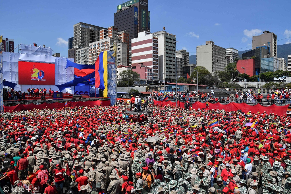 当地时间2019年2月2日,委内瑞拉加拉加斯,委内瑞拉总统马杜罗的支持者举行大规模集会,马杜罗出席集会并发表讲话。
