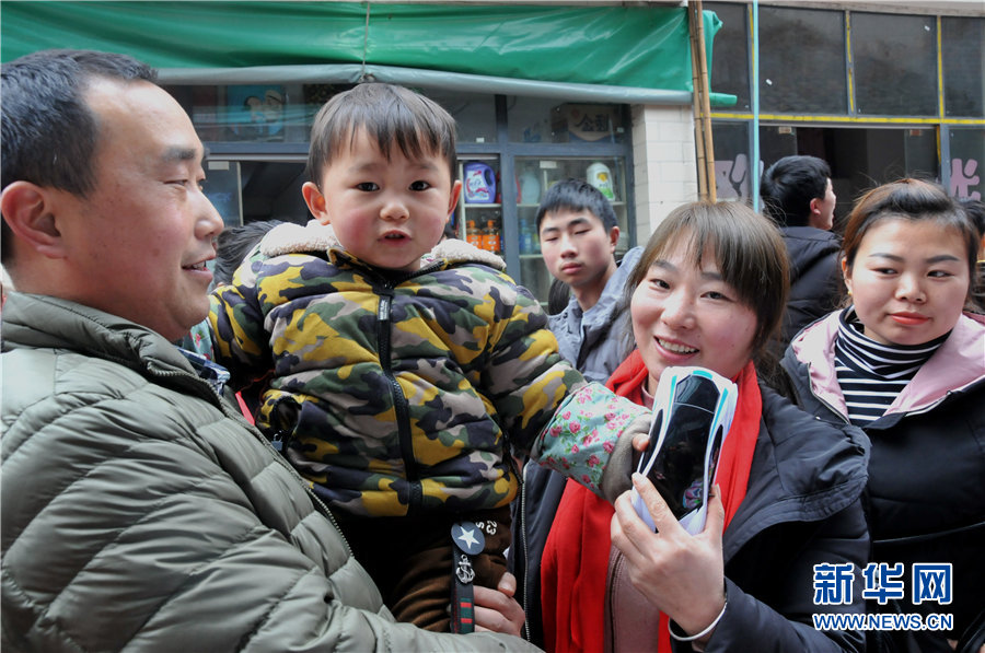 图为在丝棉村的集市上,一名小朋友得到了新的玩具。新华网 周远钢 摄