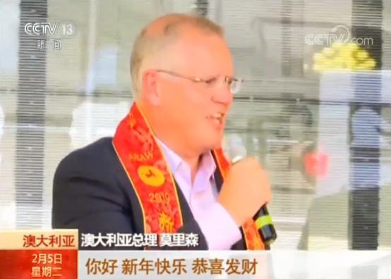 澳大利亚总理 莫里森: 你好!新年快乐,恭喜发财!澳大利亚现在有120万华人,还有20万中国留学生在这里求学,你们辛勤工作,取得了卓越的成就,我在此代表澳大利亚人民,感谢你们让澳大利亚变得更加富强,经济更加繁荣。