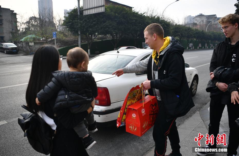 图为“洋女婿”Liam McCarthy(右二)与妻子准备打车回犍为老家过年。刘忠俊 摄
