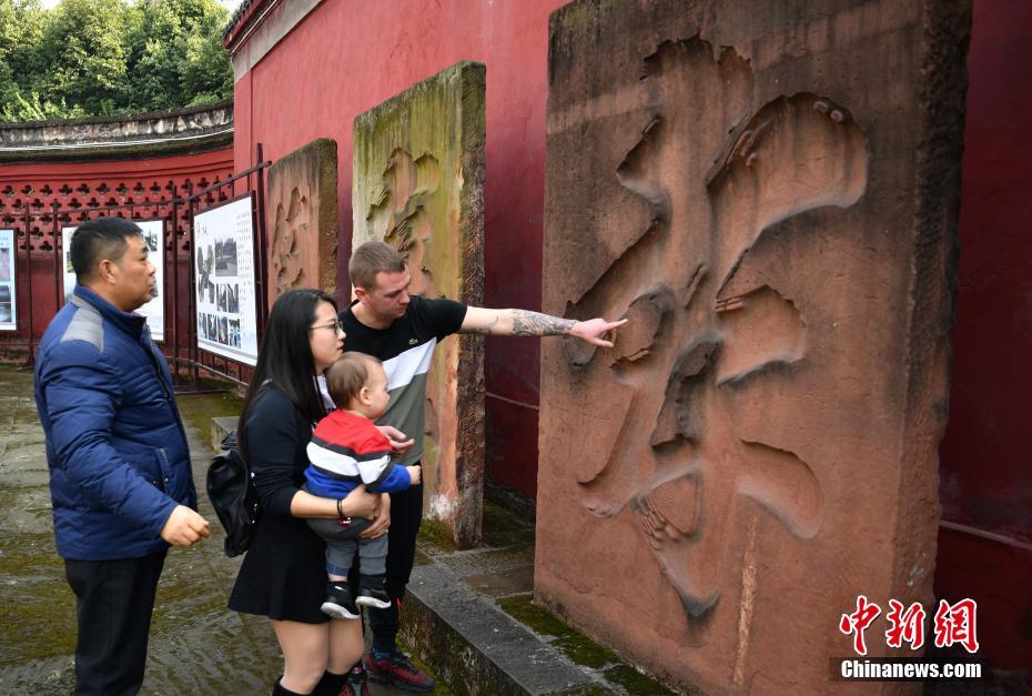 图为犍为文庙“孝”字石刻前的“洋女婿”Liam McCarthy。刘忠俊 摄