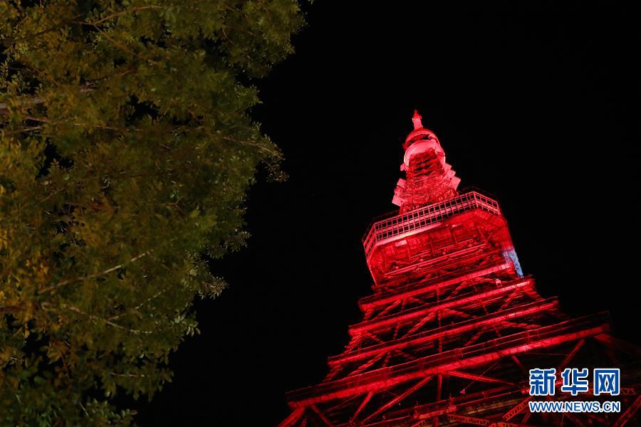 2月4日晚,日本东京的地标性建筑东京塔首次为庆祝中国春节点亮“中国红”灯光装饰。 新华社记者 杜潇逸 摄