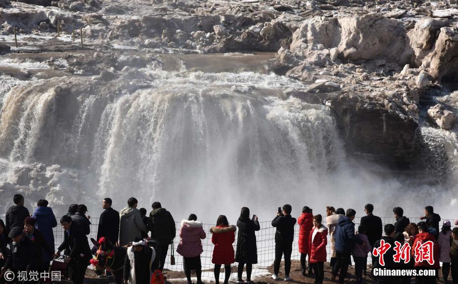 黄河壶口瀑布大年初一开门迎客 河水奔腾咆哮