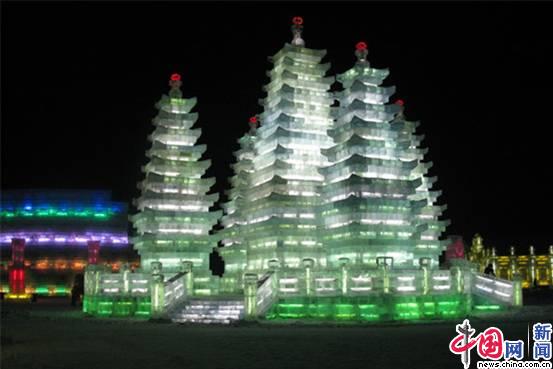 过年期间,东北点起各式各样的冰灯,增添喜庆氛围。