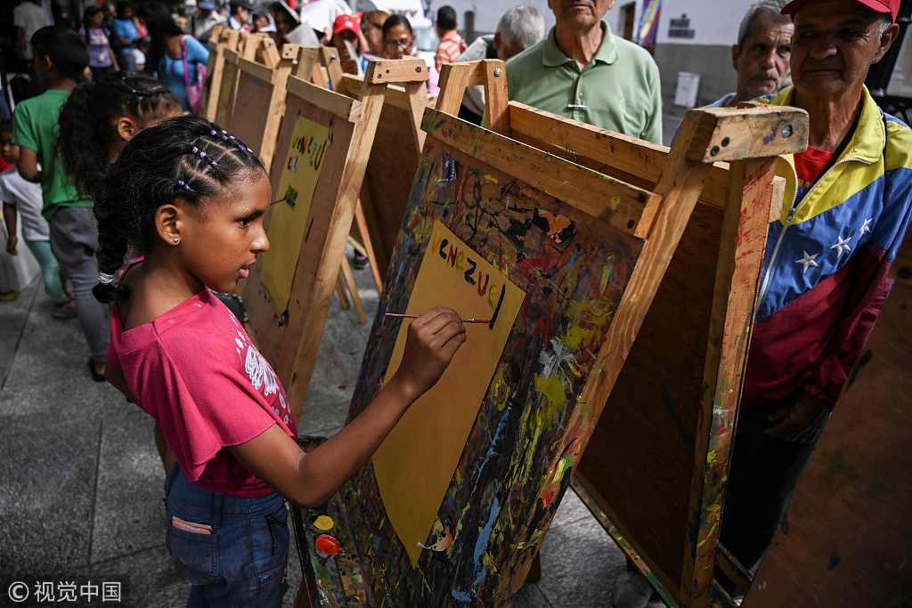 当地时间2019年2月6日,委内瑞拉加拉加斯,鉴于美国近期连续对委内瑞拉政府施加新的制裁和威胁,民众举行集会签名活动,反对外部势力干涉本国内政。在玻利瓦尔广场,许多民众自发地来到这里,参加集会签名活动,表达对马杜罗政府的支持,反对美国干涉本国内政。图片作者:YURI CORTEZ /视觉中国