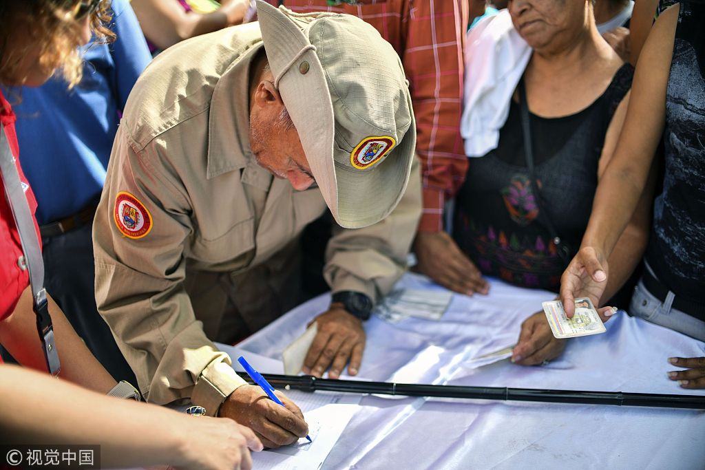 当地时间2019年2月6日,委内瑞拉加拉加斯,鉴于美国近期连续对委内瑞拉政府施加新的制裁和威胁,民众举行集会签名活动,反对外部势力干涉本国内政。在玻利瓦尔广场,许多民众自发地来到这里,参加集会签名活动,表达对马杜罗政府的支持,反对美国干涉本国内政。图片作者:YURI CORTEZ /视觉中国