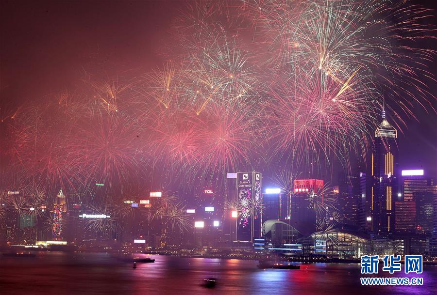 2月6日,香港维多利亚港举行贺岁烟花汇演。 新华社记者 李钢 摄