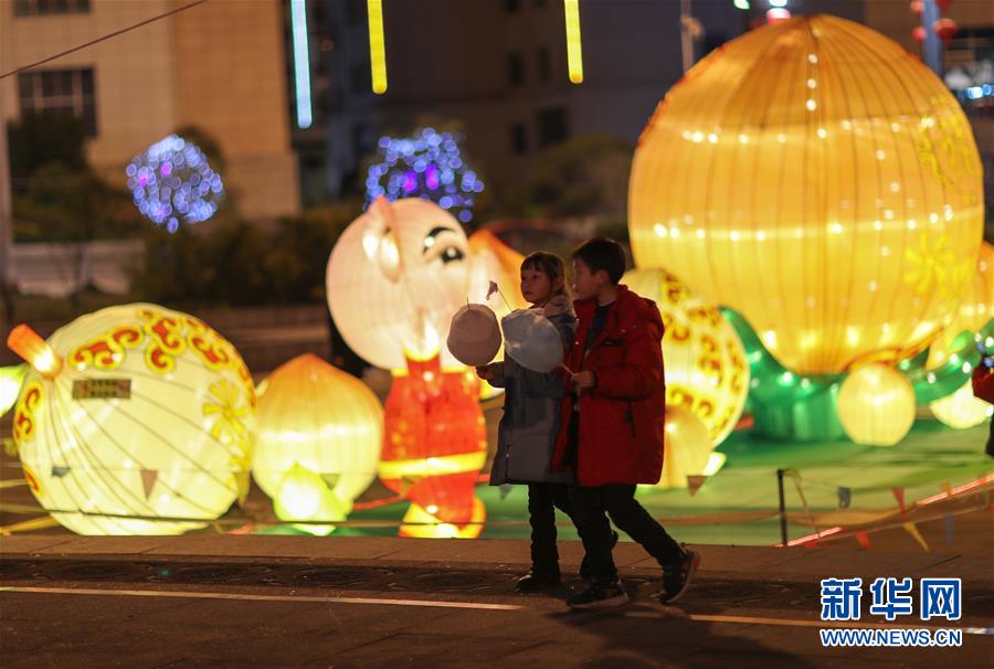2月6日,游客在贵州省铜仁市玉屏侗族自治县舞阳广场上观赏彩灯。   新春佳节,各地张灯结彩,营造出浓浓的节日气氛。   新华社发(胡攀学 摄)
