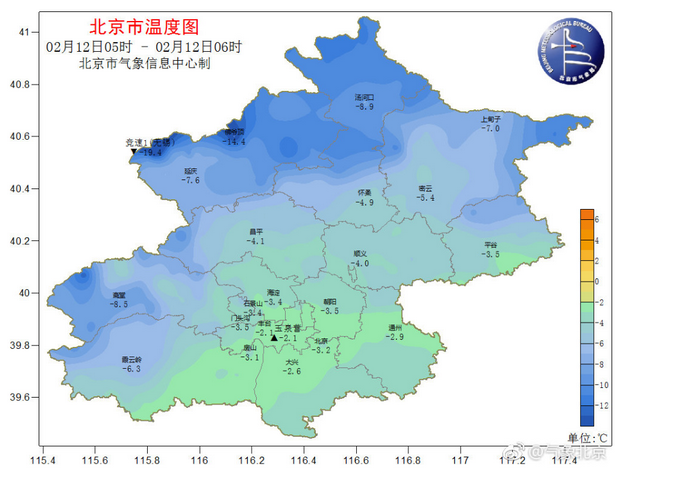 北京市气象台介绍,早晨7点25分,观象台气温零下3.5℃,城区大部地区气温在零下3℃左右,气温较低,出行注意防寒保暖。延庆、怀柔的部分地区已出现降雪,山区气温低,湿度大,易形成道路结冰,驾车还请注意交通安全。