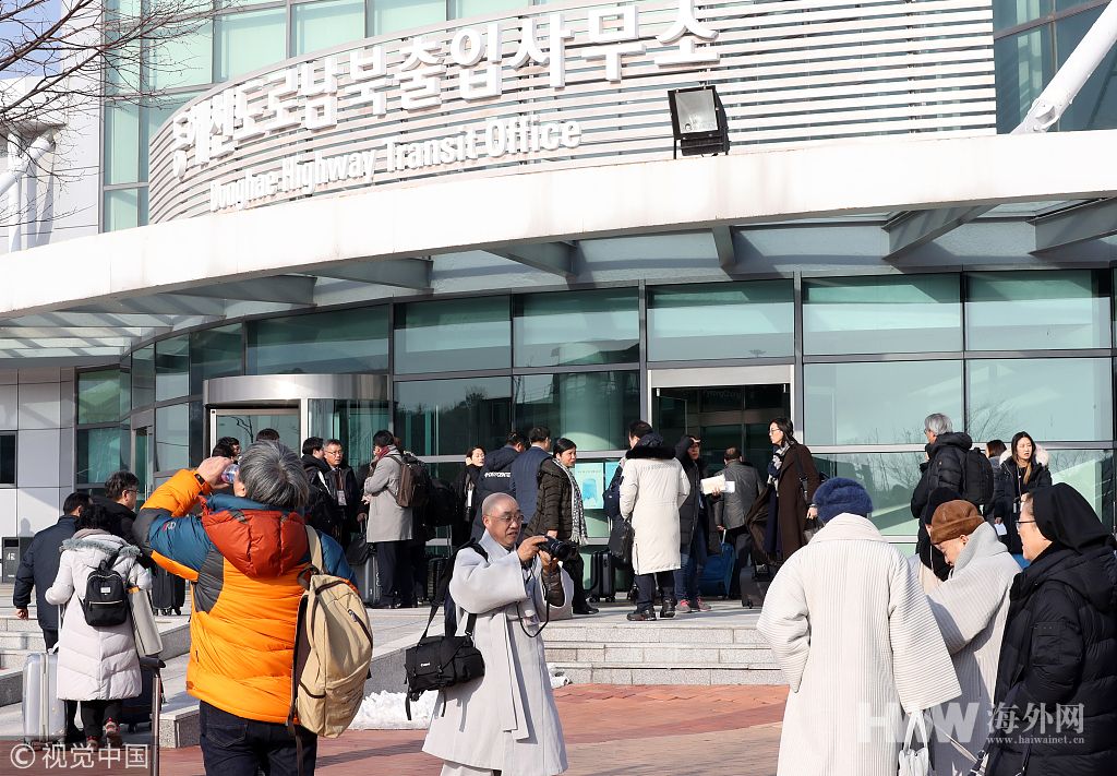 当地时间2019年2月12日上午,韩国江原道高城郡东海线公路南北出入境事务所,赴朝参加韩朝迎新春活动的韩方社团代表。