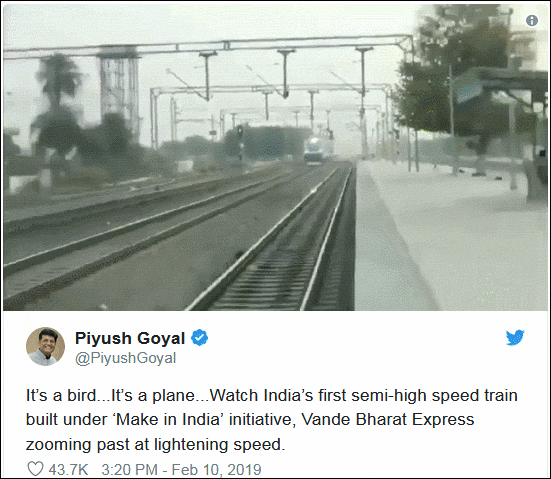 所以,你看到铁道部长推特里的自豪:印度制造,闪电速度。
