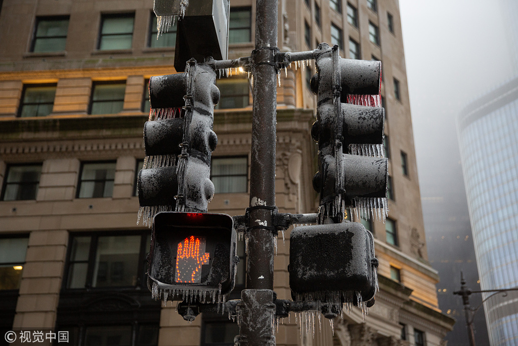 当地时间2019年2月12日,美国芝加哥继续受冷空气影响,暴风雪警报拉响。