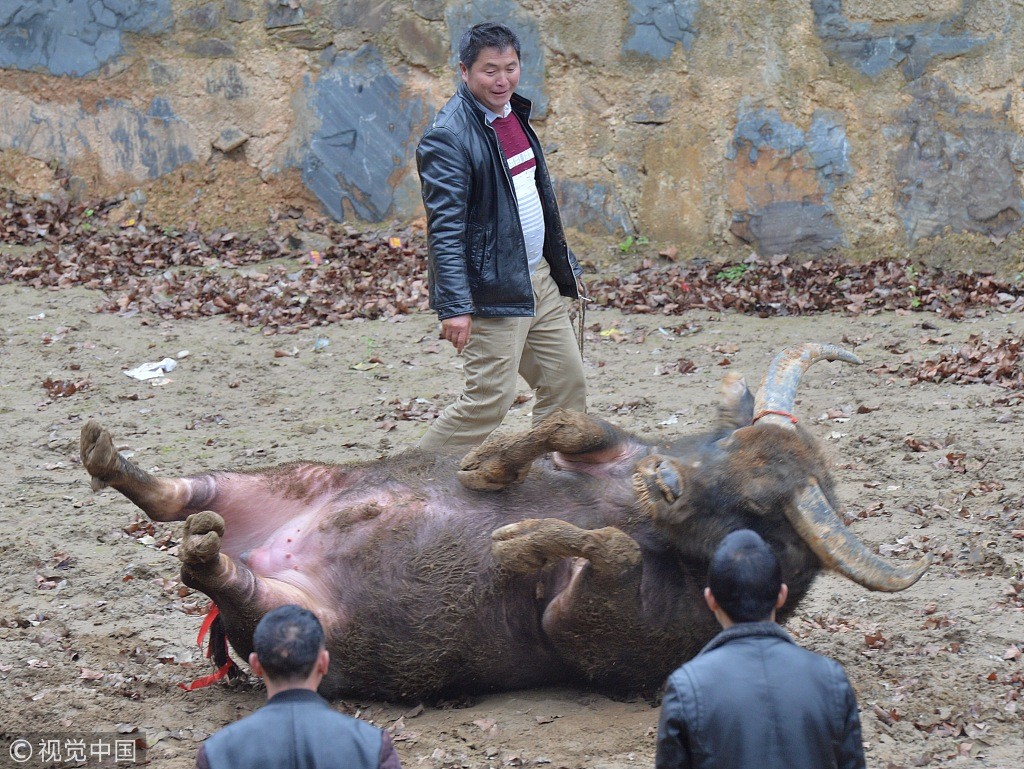 2019年2月12日,贵州黔东南,农历正月初八,榕江县兴华乡摆贝苗寨举行迎新春斗牛比赛,吸引相邻村寨众多村民相聚在苗寨斗牛场,相互恭贺新春观看斗牛比赛。精彩纷呈的斗牛比赛为初春的摆贝苗寨增加不少热闹气氛。