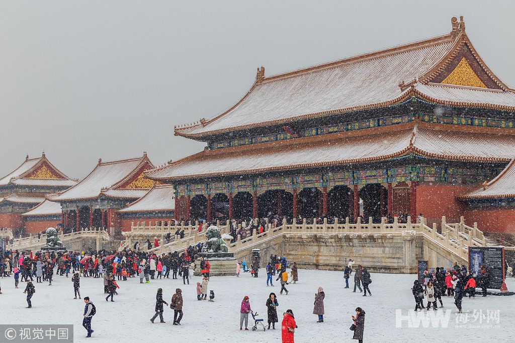 2019年2月12日,北京,雪中故宫风景美如画,游客爆满,纷纷拍照留念。
