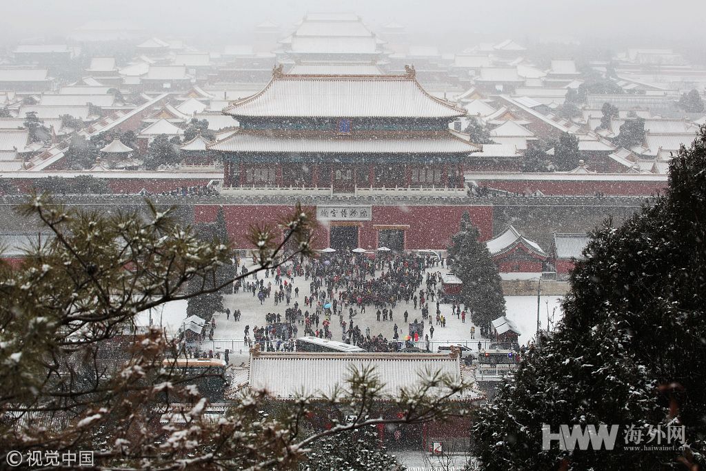 2019年2月12日,北京,故宫大雪纷飞,游客纷至沓来。