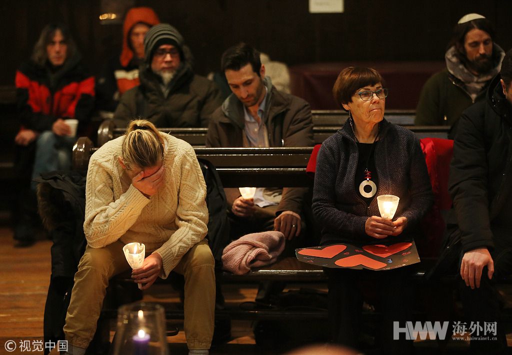 当地时间2019年2月12日,加拿大多伦多,当地民众在圣三一教堂举行集会活动,为在街头去世的无家可归者举行悼念活动。