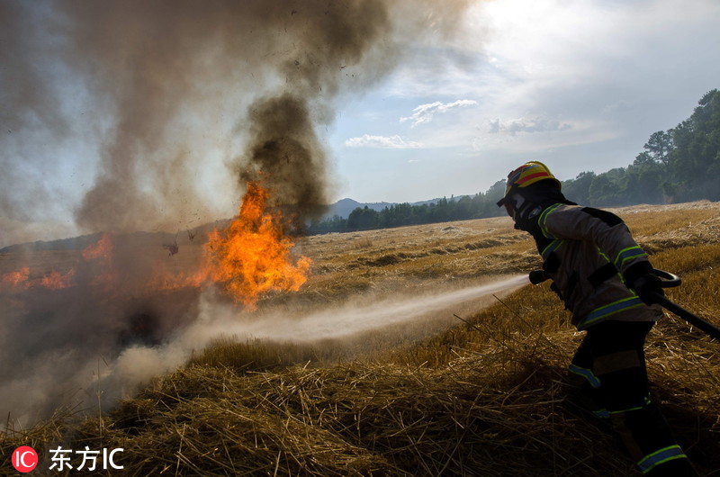 当地时间2019年2月12日,智利埃尔西亚,智利南部森林大火持续延烧,消防员进行扑救。智利南部森林大火已延烧超过两周,据欧新社消息,智利政府公布的数据显示,截至目前,这场大火的着火点已经达到4206个,过火面积为41742公顷,比去年增加了39%。