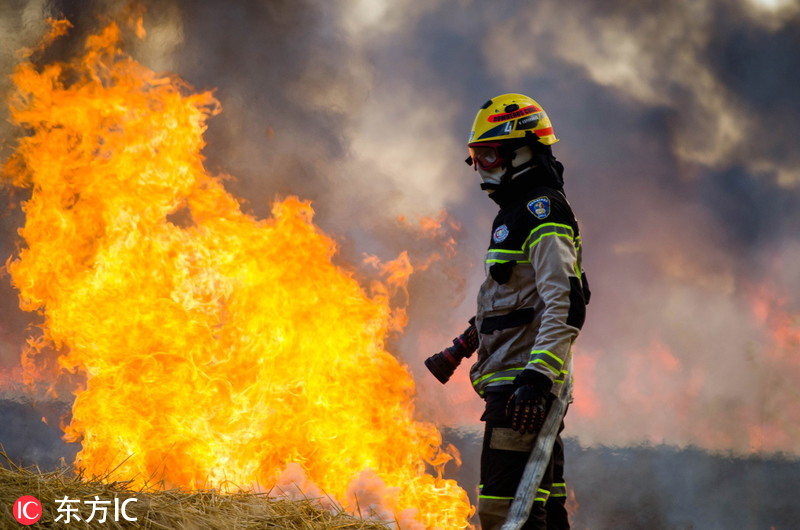 当地时间2019年2月12日,智利埃尔西亚,智利南部森林大火持续延烧,消防员进行扑救。智利南部森林大火已延烧超过两周,据欧新社消息,智利政府公布的数据显示,截至目前,这场大火的着火点已经达到4206个,过火面积为41742公顷,比去年增加了39%。