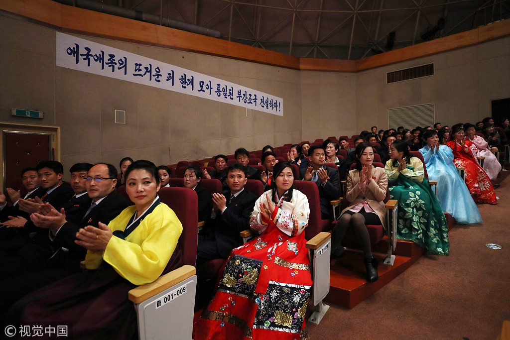 当地时间2019年2月12日,朝鲜金刚山,朝韩在金刚山举办民间交流活动。据韩联社报道,为期2天的朝韩民间交流活动——实践联合宣言迎新联谊会13日在朝鲜金刚山圆满结束。
