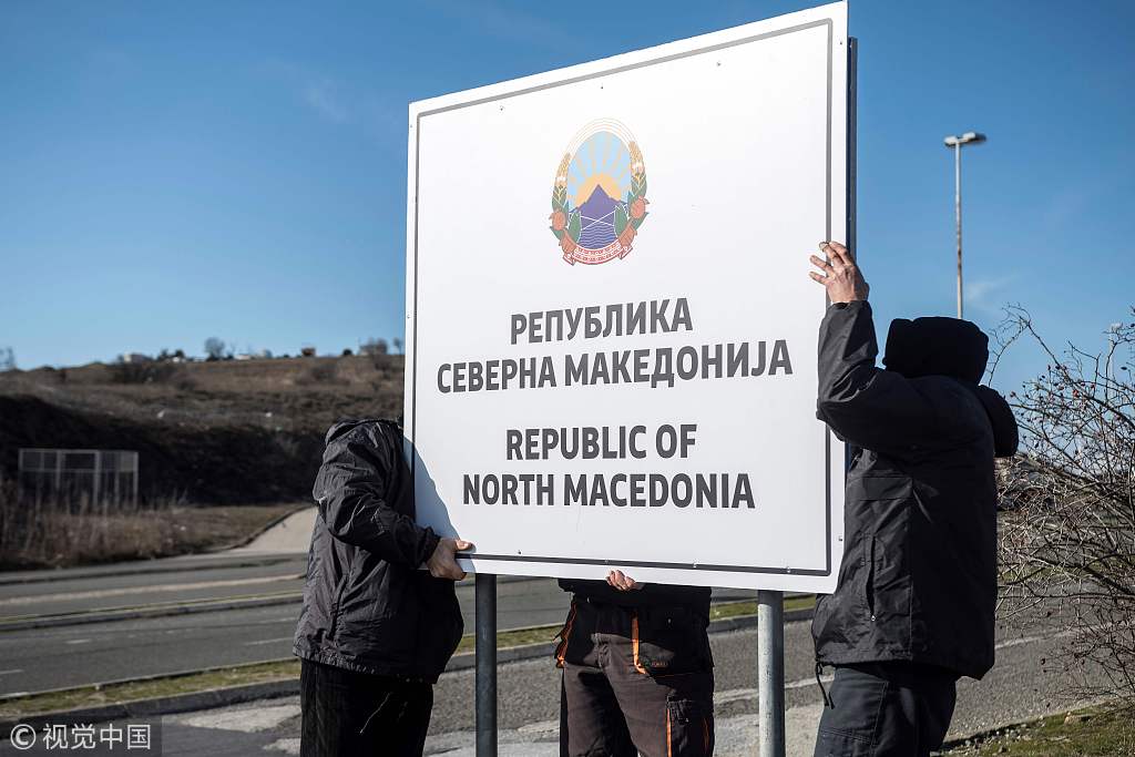 马其顿正式更名为“北马其顿共和国” 北希边境路牌被撤换
