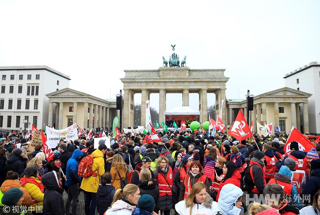 当地时间2019年2月13日,德国柏林,数百名公务员参加由工会发起示威活动,要求提高工资。