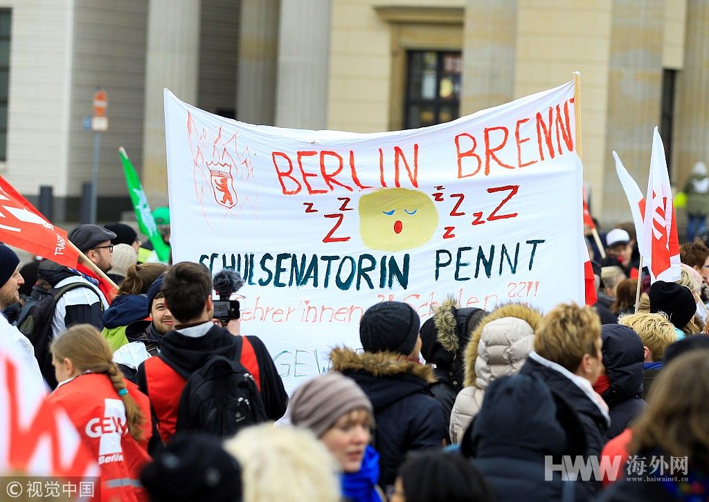 当地时间2019年2月13日,德国柏林,数百名公务员参加由工会发起示威活动,要求提高工资。