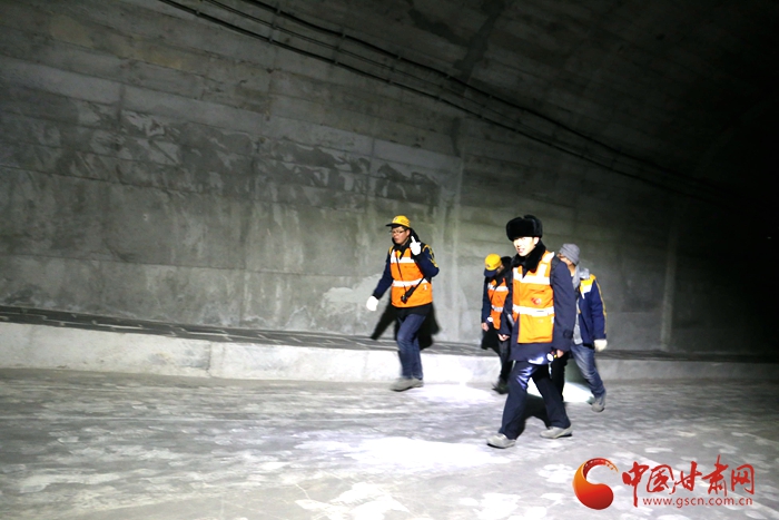 经过两个多小时的颠簸,职工们乘坐的黄色工程车停靠在胡麻岭隧道的8号斜井口,他们需要穿过全长340米的通道,直接进入当日的施工地点。进入春运,随着气温的不断降低,“除冰”和“治水”成为职工们迫在眉睫的工作,由于隧道中的渗漏水点较多,加之胡麻岭隧道长度大,工作量随之加大。职工们往往是兵分两路,一路负责整治隧道内的渗水点,另一路负责清除未整治渗漏水的结冰。
