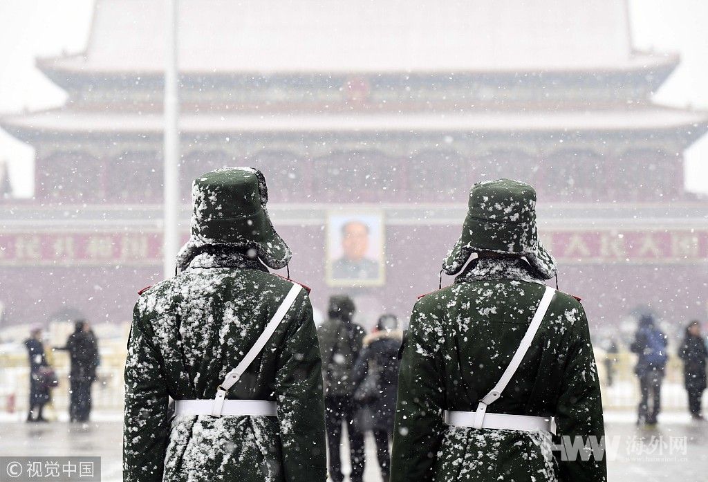 雪中军威 武警战士雪中守候天安门广场