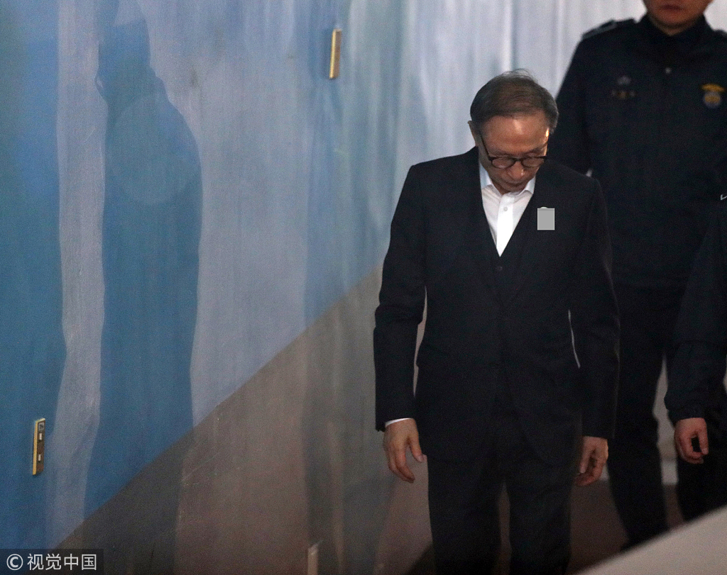 韩国前总统李明博在首尔出庭受审