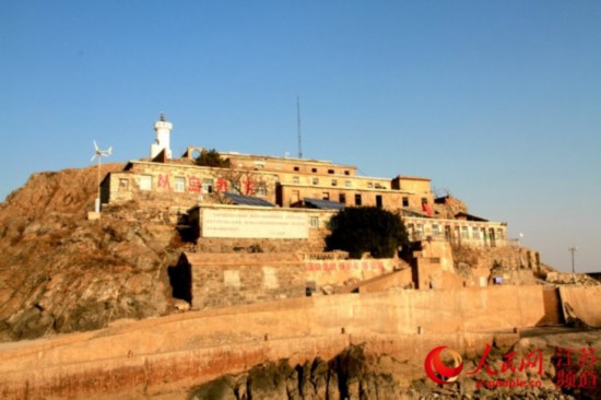 从燕尾港渔码头到开山岛12海里,无风无浪,一路只用了40分钟。站在船头远眺,开山岛就像大海中的一叶扁舟。午后的阳光下,高大的白色灯塔和因势而建的五排房屋高低有秩。此时的大海波平如镜,记者的内心却难以平静。