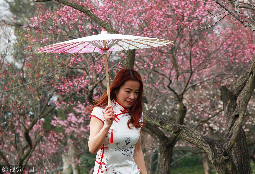 2019年2月16日,江苏省南京市,当日,2019中国·南京国际梅花节开幕,梅花山梅花绽放,春意初显。很有市民利用周末休息时间到梅花山踏春赏梅。