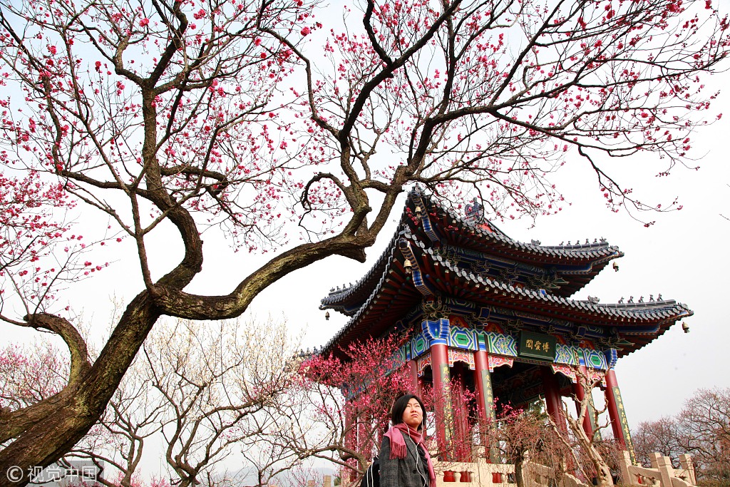 2019年2月16日,江苏省南京市,当日,2019中国·南京国际梅花节开幕,梅花山梅花绽放,春意初显。很有市民利用周末休息时间到梅花山踏春赏梅。