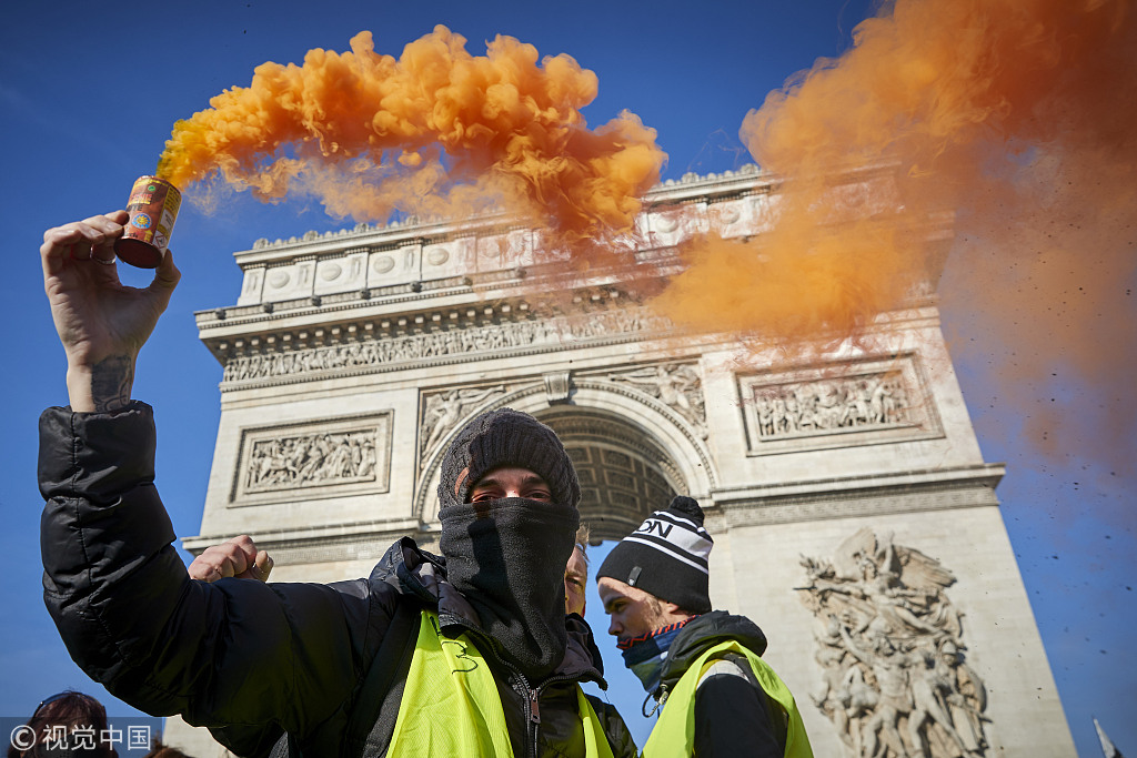 当地时间2019年2月16日,法国,第十四次“黄背心”示威游行举行。本次抗议活动标志着“黄背心”运动已持续了3个月。