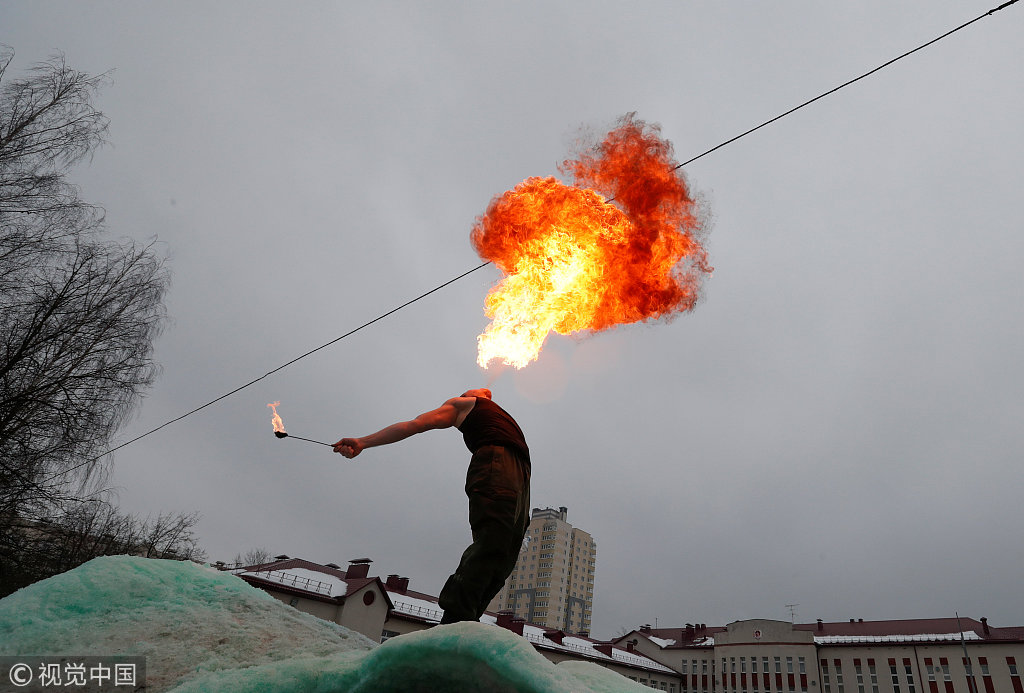 当地时间2019年2月17日,白俄罗斯明斯克,白俄内政部特种部队基地举行“冬季趣味”活动。