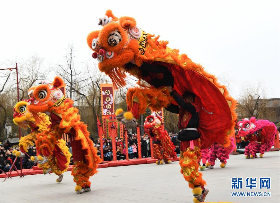 2月17日,民间艺人在山东省枣庄市台儿庄古城表演舞龙。元宵节临近,各地举办丰富多彩的民俗活动,欢欢喜喜迎佳节。 新华社发(李宗宪 摄)