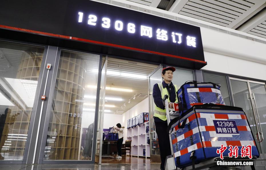 南昌西站12306网络定餐工作人员准备将餐食送到站台。张杰 摄