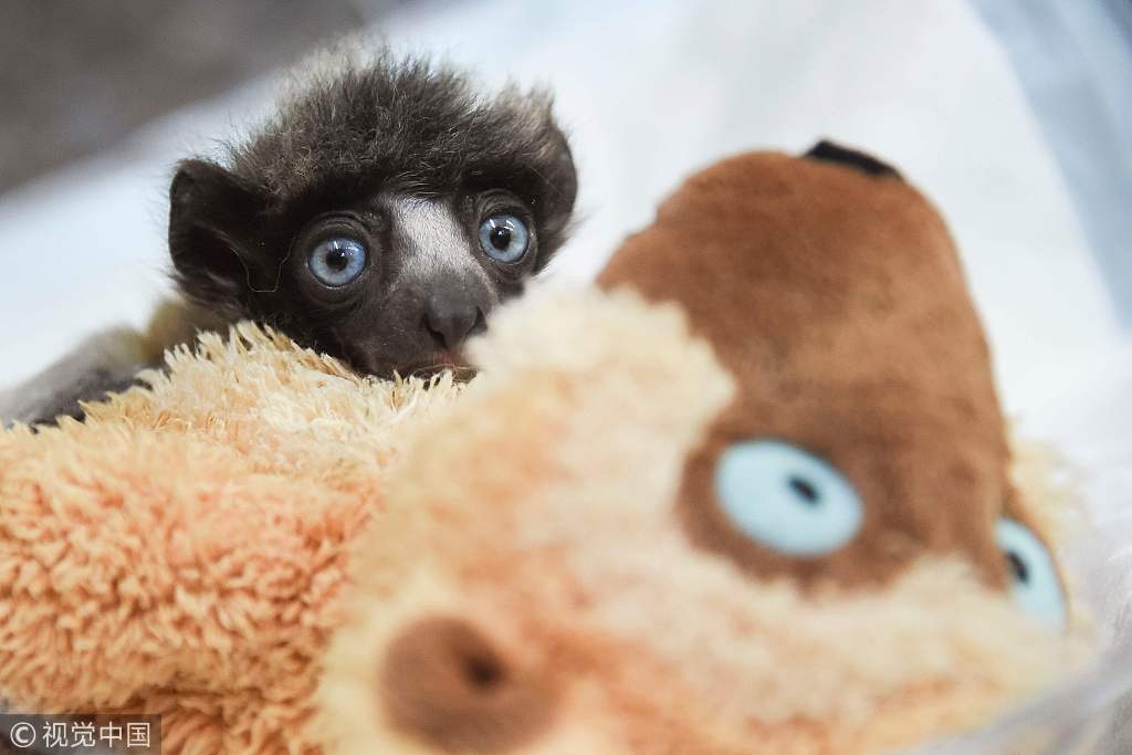 马达加斯加濒危冠冕狐猴宝宝亮相 大眼呆萌惹人爱