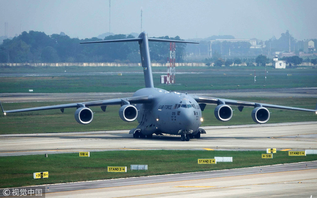 美国总统专机"海军陆战队一号"抵达越南河内