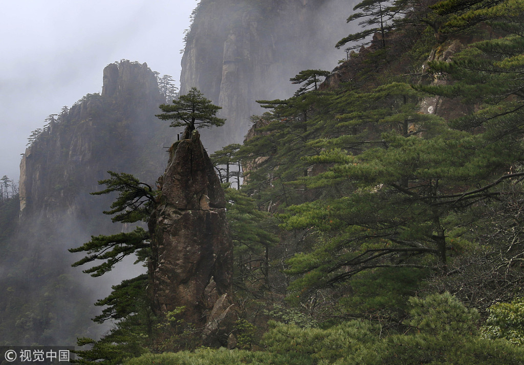 2019年2月21日,春雨绵绵,安徽黄山云雾缭绕美如画。入春以来,安徽黄山风景区持续阴雨天气,云雾缭绕弥漫,逶迤群峰若隐若现,如梦如幻,宛若水墨画卷。