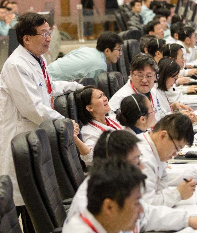 答:我来自中国,他们是我的创造者。看上图,落月的那一刻,两代“嫦娥人”的手,紧紧地握在了一起。