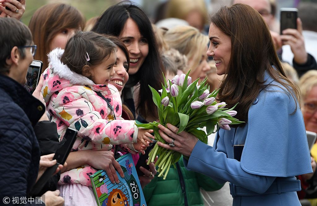 当地时间2019年2月28日,英国北爱尔兰巴利米纳,威廉王子和凯特王妃访问当地,民众夹道迎接。