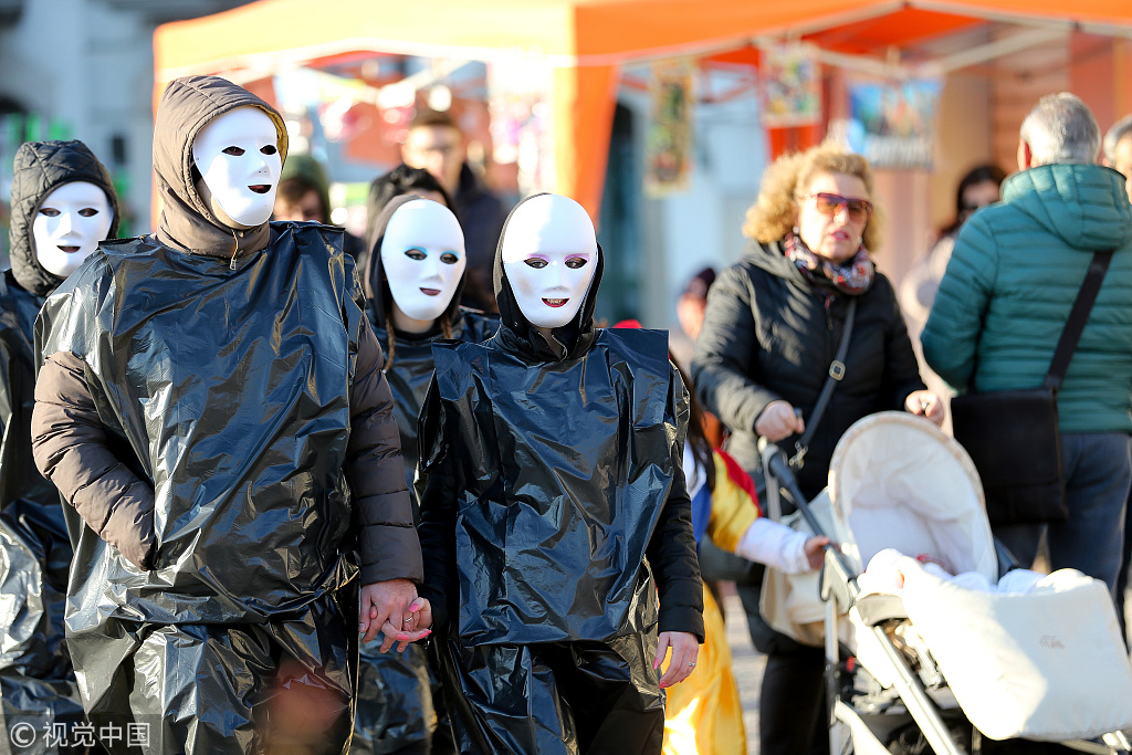 当地时间2019年2月28日,意大利Capua,当地举办狂欢节大游行。